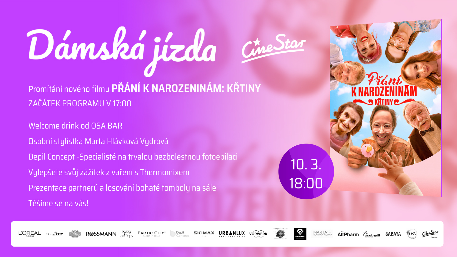 Můžete se těšit na komedie Přání k narozeninám - krřtiny. V multikině CineStar Olomouc CITY se potkáme v úterý 10. března 2026!