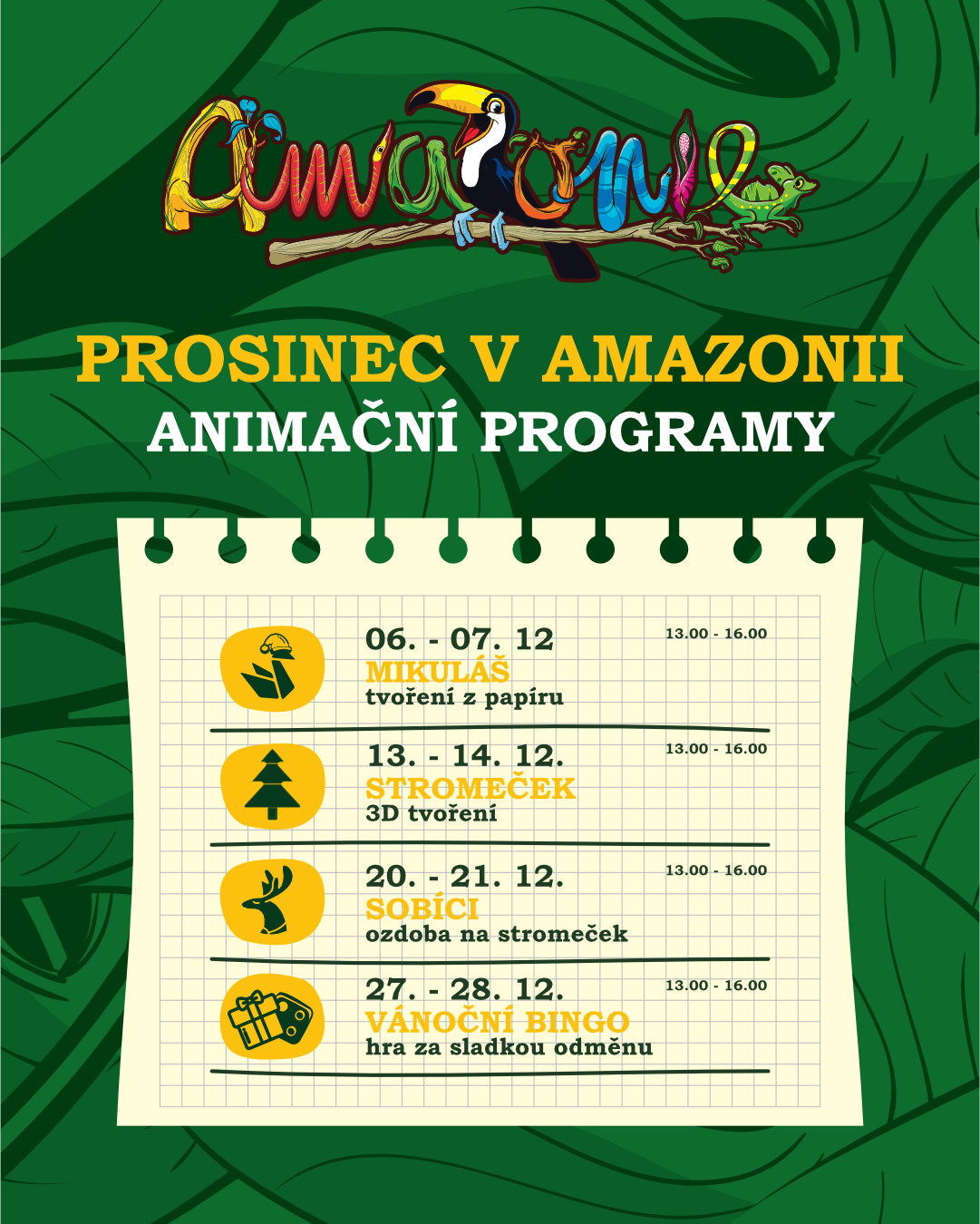 Každou sobotu a neděli v Amazonii připravujeme animační programy a tentokrát budou vánočnější.